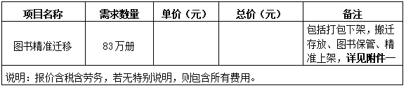 因单位需求,现对集团旗下beat365在线体育官网登录入口图书馆图书精准迁移项目进行招标采购,欢迎全国有资质的供应商前来投标。
