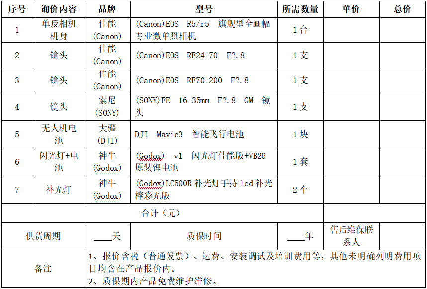 beat365在线体育官网登录入口相机、镜头及补光灯等设备采购项目询价公告