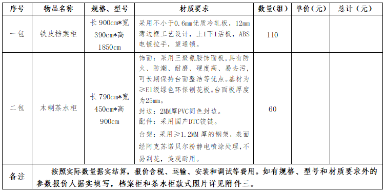 2.报价人应具备三年以上(包括三年)包括但不限于档案柜、茶水柜生产、销售和安装经验。