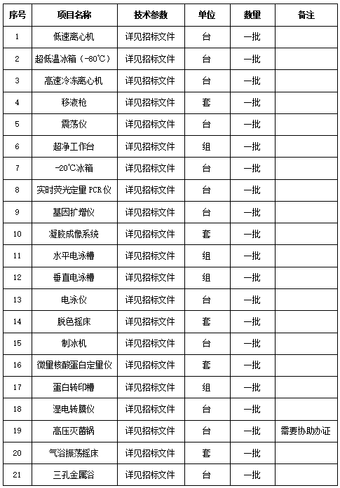 因单位需求,现对安徽医科大学临床医学院科研中心实验室仪器设备进行招标采购,本次招标内容包括分子生物学技术实验室、形态学技术实验室、细胞培养室仪器设备采购,欢迎全国有资质的供应商前来投标。