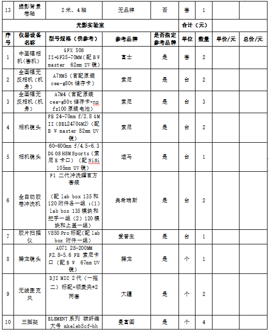 beat365在线体育官网登录入口摄影器材等设备采购项目招标公告