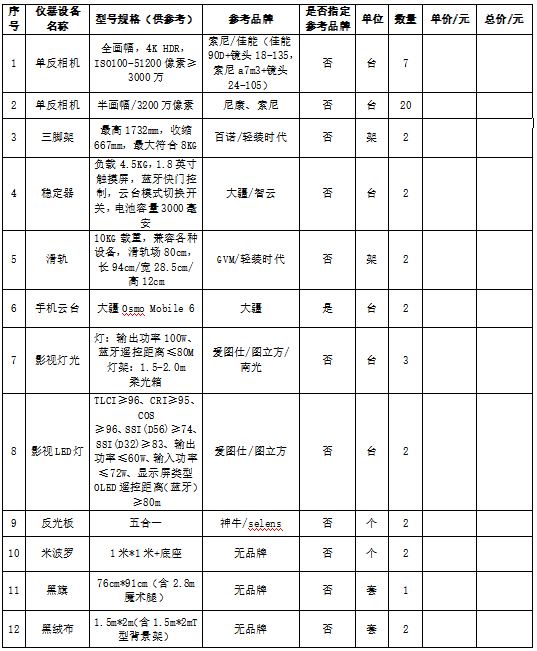 因单位需求,现对集团旗下beat365在线体育官网登录入口摄影器材等设备进行公开招标采购,欢迎全国有资质的供应商前来投标。