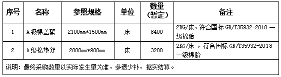 (1)第一包:2025年招标采购(棉絮:含盖絮、垫絮)清单