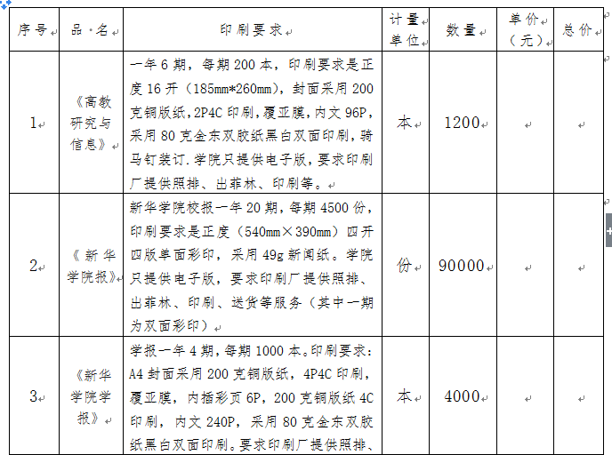 beat365在线体育官网登录入口《高教研究与信息》、《新华学院报》、《新华学院学报》等印刷采购询价公告