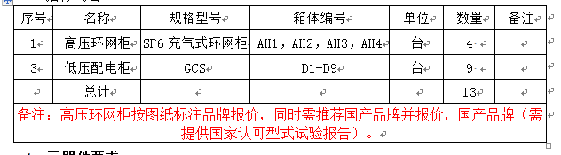 注:高低压柜的安装由相应的安装承包单位完成,中标人负责现场安装指导及调试。