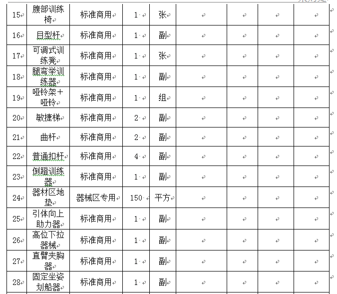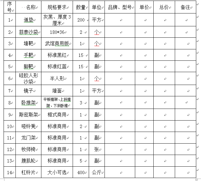 2、询价项目:跆拳道馆、健身房器材