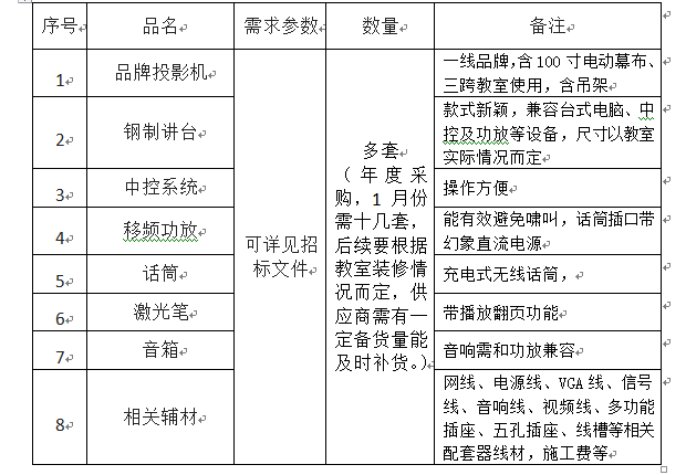 2、履行合同所需的任何项目若未有明确加在所列价款中,该部分有关费用应视作包括在投标报价之内(如运送、设计、调试安装等);
