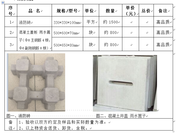 2、招标项目:消防砖、混凝土盖板 雨水篦子项目