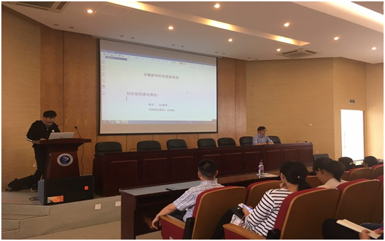 随后,报修系统厂家技术人员对教职工企业微信入口的报修流程进行培训,培训内容包括仪器设备报修流程、空调报修流程、零星报修流程以及PC端的管理统计分析功能,并解答了参会人员的使用疑问。结合厂家的培训内容,参会人员现场体验了报修系统。