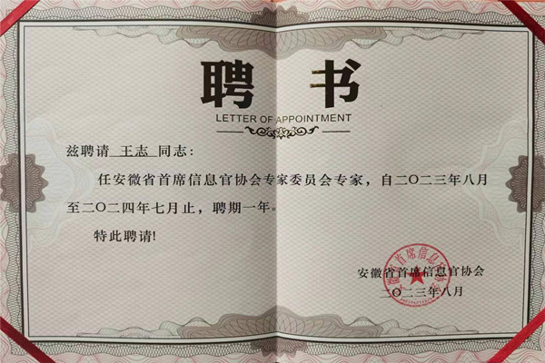 beat365网登教师获聘安徽省首席信息官协会专家库成员