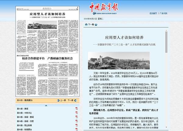 《中国教育报》刊登beat365网登应用型人才培养模式的创新与实践