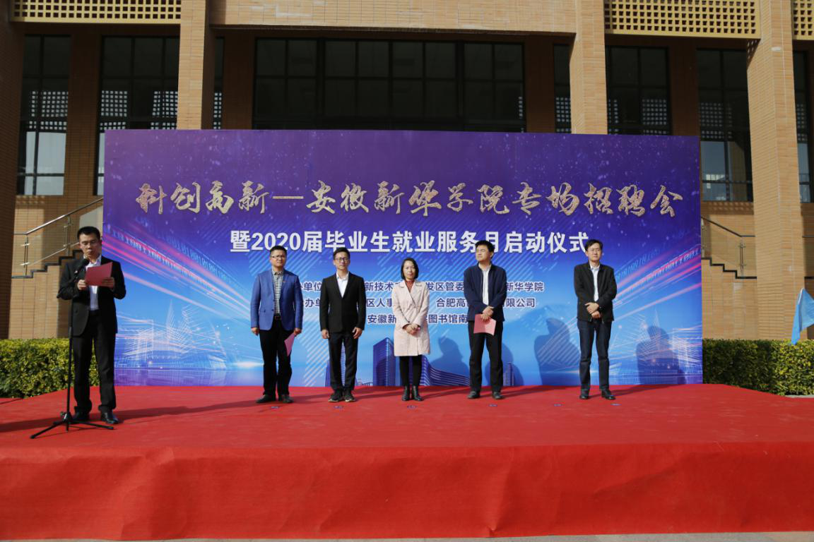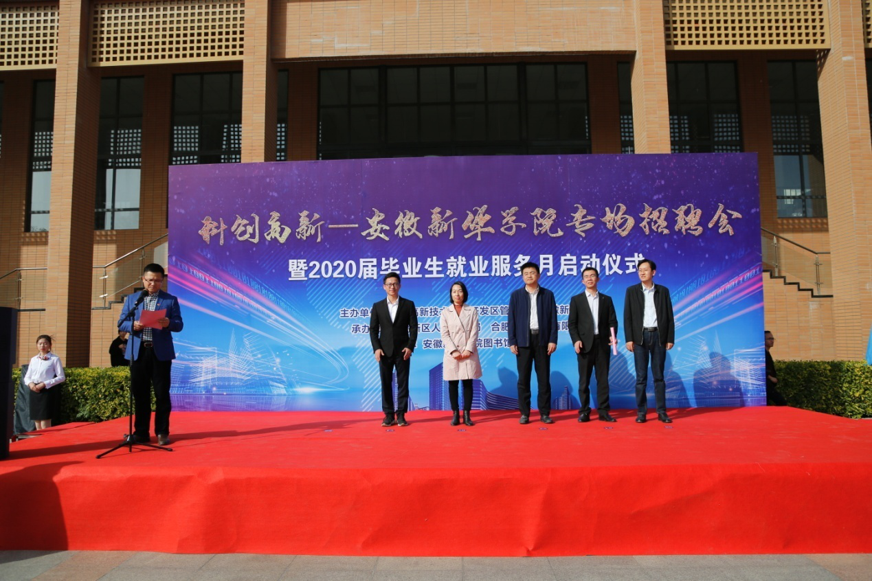本网讯(通讯员:罗振林)蜀山南麓,如琴湖畔,秋色盎然,10月30日,由beat365在线体育官网登录入口与高新区管委会联合主办的“科创高新—beat365在线体育官网登录入口专场招聘会暨2020届毕业生就业服务月启动仪式”在学校图书馆南广场顺利举行,常务副校长王丽、合肥高新区管委会主任助理张建军、合肥高新区管委会人事局副局长姚笛、副校长方纯洁、合肥高新区管委会高创公司董事长兼总经理许永、校长助理贺行佳、高新区人事劳动局就业保障处处长张力、合肥高创股份有限公司创新平台管理部经理张晨等出席了此次活动,启动仪式由贺行佳主持。