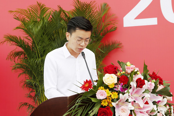 商学院副教授金成林分享了自己在大学期间关于读书和生活的切身体会,赠与新生“四千万”,千万要“厚德修身,以德润才”;千万要“求真务实,敢于质疑”;千万要“博学多识 勤奋好学”;千万要“创新进取,追求卓越”。他希望同学们要有主人翁意识,作为华园的主人,在这里播种耕耘,并收获属于自己的创新成果。