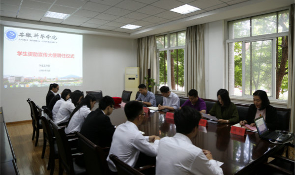 本网讯(通讯员:姚蓓)为进一步落实教育部全国学生资助管理中心《关于组织国家奖学金获奖学生担任“学生资助宣传大使”的通知》(教助中心〔2017〕181号)文件精神。 学生处于5月8日在招办会议室举行“学生资助宣传大使”聘任仪式,副校长朱兆健、宣传处处长管玉中、学生处处长汪俊东、学生处副处长柯姗姗出席会议,聘任仪式由学生处处长汪俊东主持。