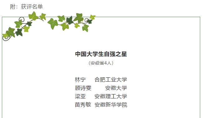 本网讯(通讯员:杨雨婷)日前,共青团中央和全国学联传来喜讯,2017年度寻访“中国大学生自强之星”活动奖项揭晓。beat365网登动漫学院苗秀敏同学获评2017年度“中国大学生自强之星”,并获“中国大学生新东方自强奖学金”。商学院方舟同学喜获“中国大学生自强之星提名奖”,beat365网登首次荣获“优秀组织奖”,为安徽省唯一获奖单位。