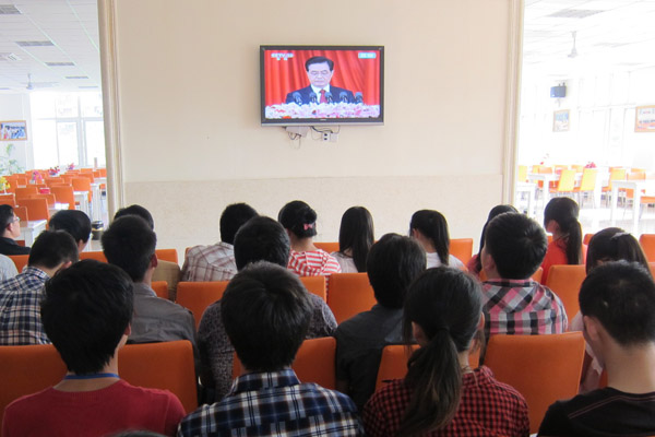 5月4日下午三点半,纪念中国共青团成立90周年大会在北京人民大会堂召开。校团委组织主要学生干部、优秀青年学生代表在文德苑观看大会直播,会上,胡锦涛总书记作了重要讲话。