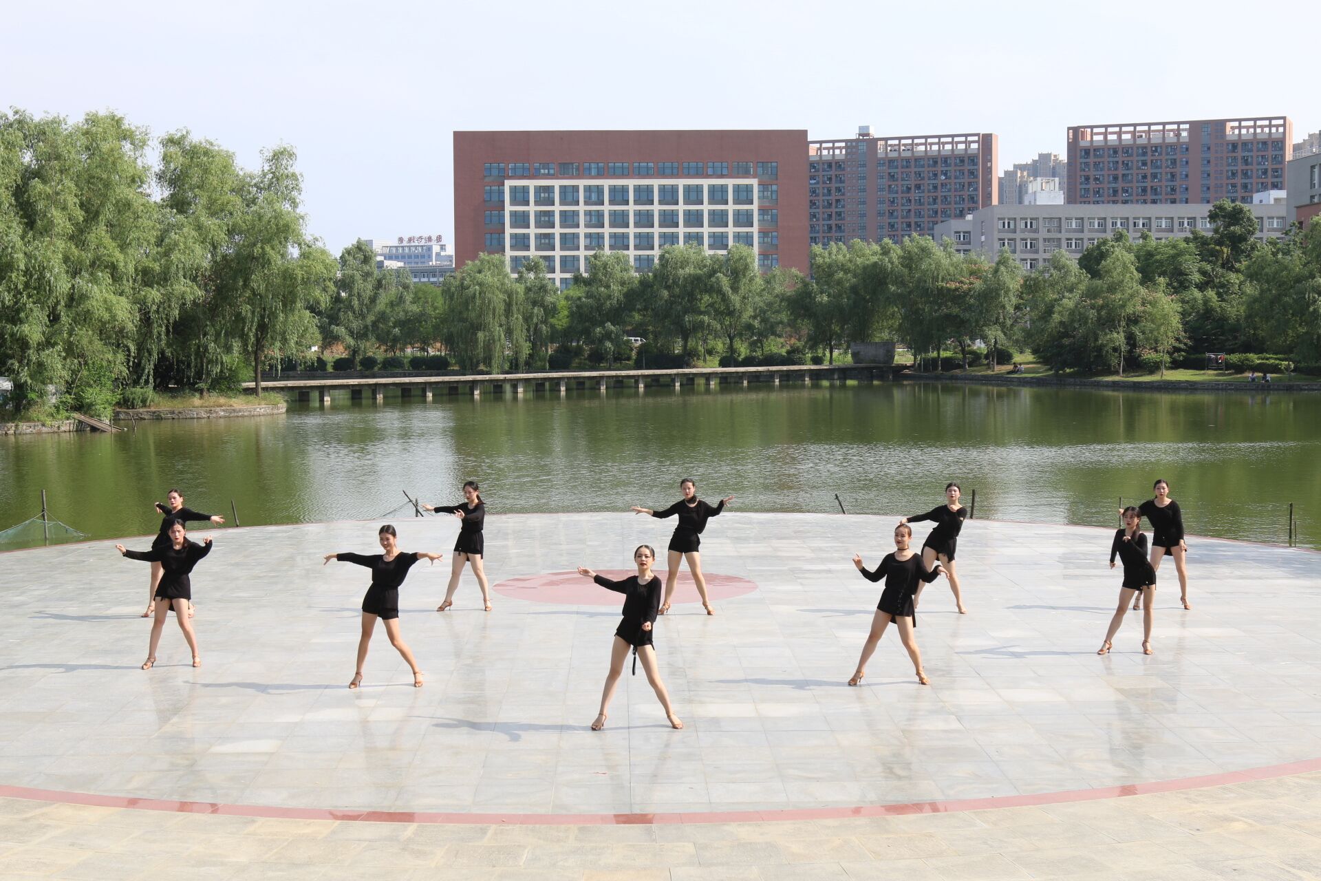 而在如琴湖下沉广场,媒体一行欣赏了由学校学生带来的体育舞蹈。它融合了体育的活力和舞蹈的柔美,别具一格的舞蹈风格让媒体团成员们赞叹不已。