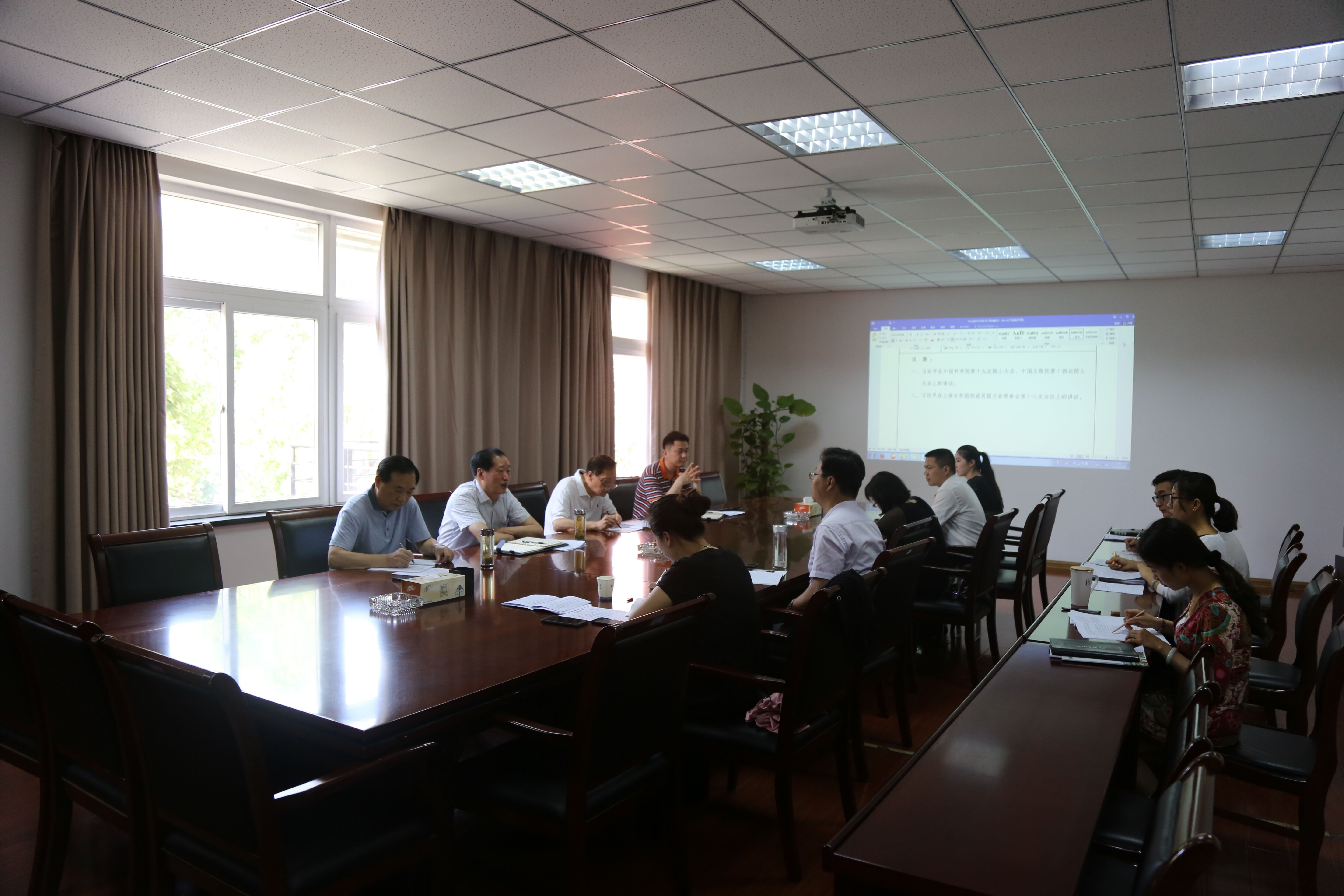 本网讯(通讯员:陈建 摄影:金政)6月14日上午,校党委召开中心组理论学习会议,学习习近平在中国科学院第十九次院士大会、中国工程院第十四次院士大会上的讲话和习近平在上海合作组织成员国元首理事会第十八次会议上的讲话。省督导专员、校党委书记储国定,校党委副书记、校长石秀和,副校长杨世国,副校长朱兆健以及其他党委委员参加了会议。会议由储国定主持。