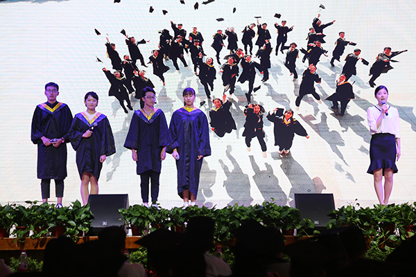 图书馆、如琴湖、秋实路、醉文池……开场视频中一个个熟悉的校园景点、一次次激情澎湃的活动场景、一张张青春洋溢的脸庞,让2018届毕业生回顾了在华园的四年大学时光。