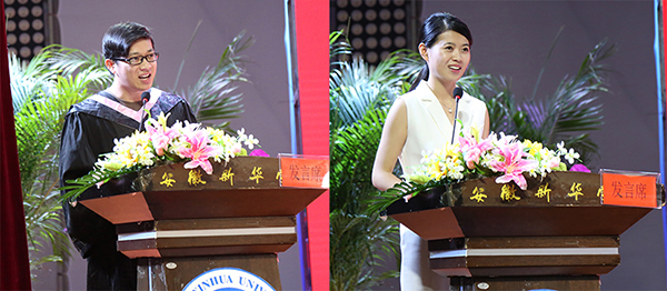仪式上,学生代表张瑞回顾了在华园的难忘记忆,感慨从懵懂稚嫩走向成熟稳重、从浮躁迷茫走向沉着坚定的过程,代表毕业生感谢学校的辛勤培育,并表示将以崭新的角色开启未来的人生,不断自强奋斗,为校争光。教师代表洪玉对毕业生圆满完成学业表示祝贺,希望他们自在如风地去追逐梦想,母校和老师永远在他们身后。