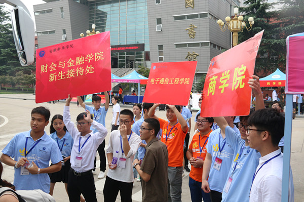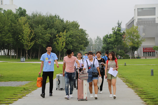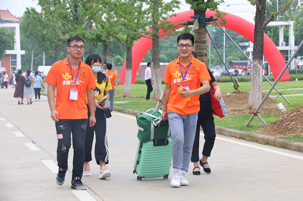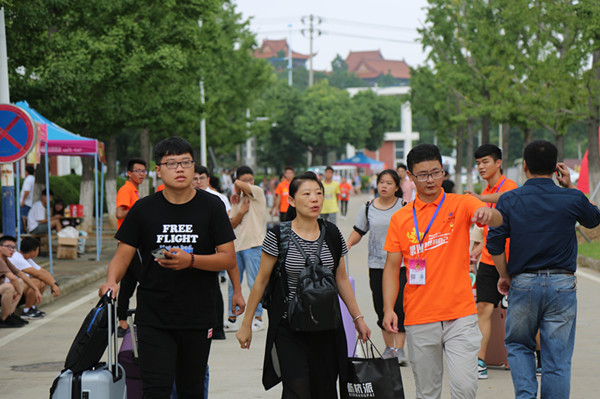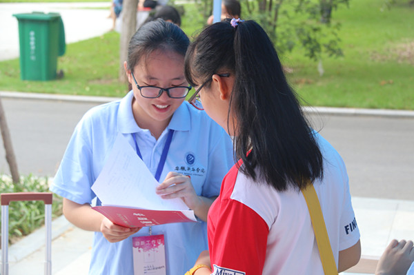 负责迎新的志愿者不断穿梭在校园的各个院校及宿舍之间,在炎炎烈日下,汗流浃背亦无暇顾及,每来一位新生,都争先恐后地前去帮忙。作为志愿者的一员,2016级新闻学二班的赵一茹说:“为了让此次迎新工作顺利开展,我们前期做了很多准备:开会、分工、安排人员全程陪同。在迎新工作中,我们帮助新生拿行李,引导新生办理入学手续、指引新生领取军训服装、为休息区的家长递水并解答问题、为不熟系校园的家长和同学带路……作为志愿者虽然辛苦也挺累,但是在这期间可以认识很多的新生,让他们感受到我们华园的氛围,很有成就感。”