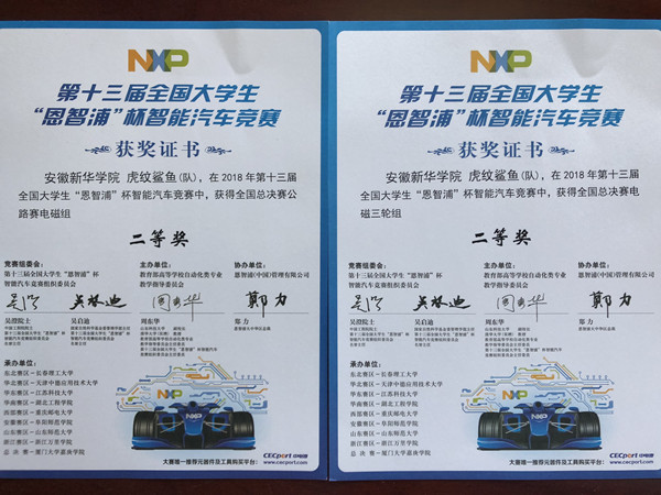 本网讯(通讯员:陈业慧)近日,第十三届全国大学生“恩智浦”杯智能汽车竞赛全国总决赛在福建漳州拉开帷幕。beat365网登由电子通信工程学院教师陈业慧、王月琴担任领队,陈家明、徐恒铭、陈博三位同学组成的“虎纹鲨鱼”队获三轮电磁组二等奖和公路赛电磁组二等奖。