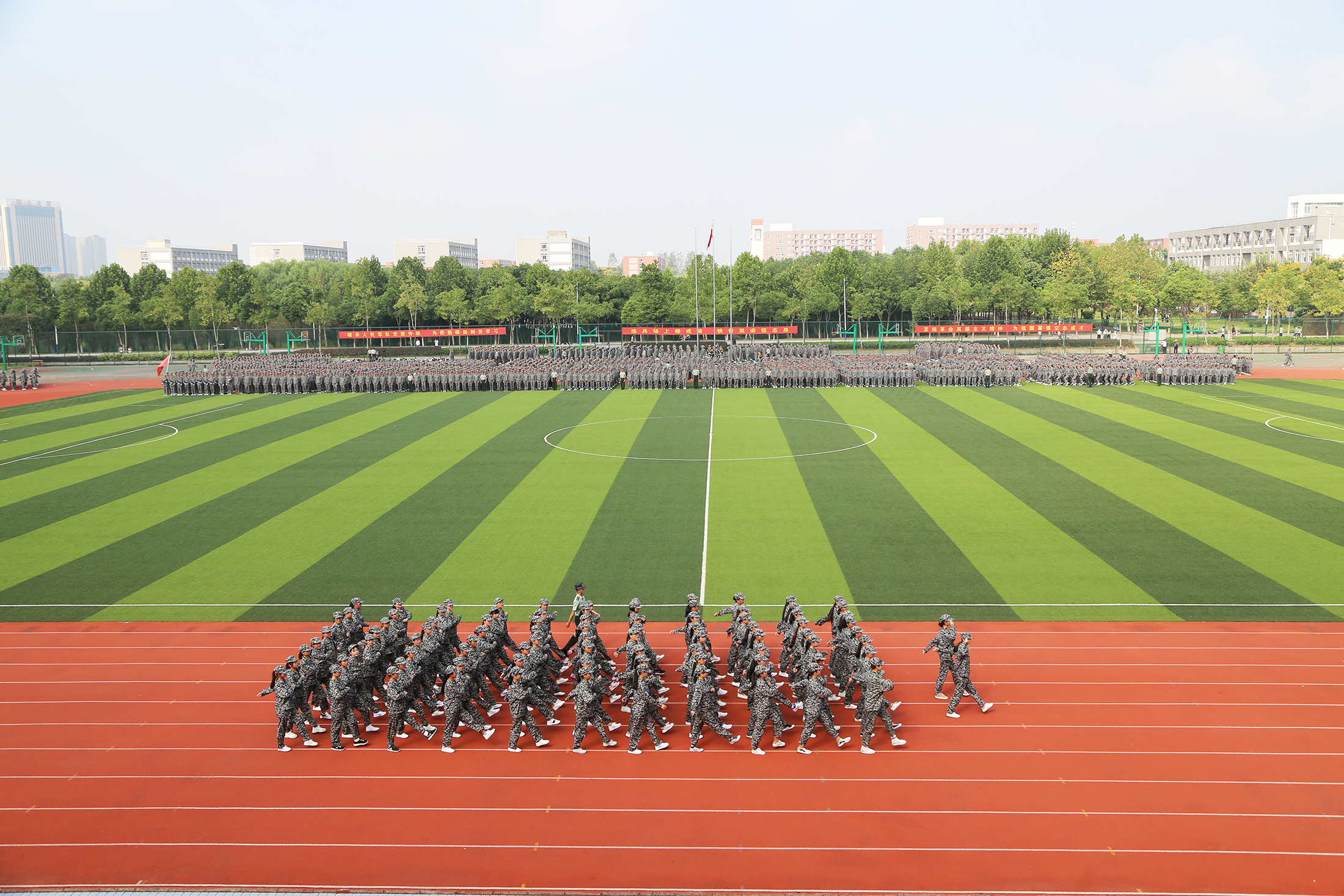 十天的艰苦训练,十天的朝夕相处,十天的汗水与骄阳,都会成为大家记忆篇章里最美好的一页!美丽的华园不仅是学习专业知识的殿堂,更是每一个华园人成就美好未来的精神家园。希望大家秉承“厚德、求真、博学、创新”的校训精神,以高昂的斗志、饱满的热情投入到学习生活中,在华园过得充实、快乐!