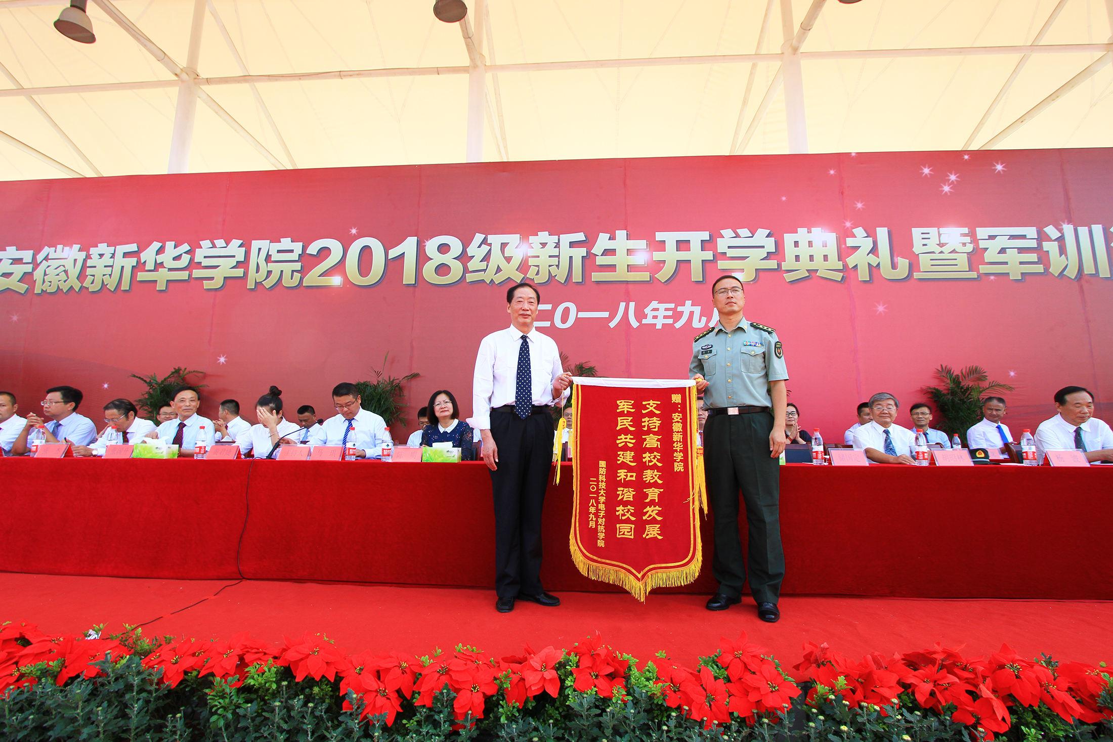 本网讯 (文:赵彩虹 摄影:金政、陆如海)秋风飒爽,丹桂飘香。9月15日上午,beat365网登2018级新生开学典礼暨军训汇报表演在祥云体育场举行。新华集团总裁张明,省督导专员、学校党委书记储国定,校长石秀和,高级顾问胡昭林,常务副校长王丽,国防科技大学电子对抗学院上校杨波,副校长陈明、杨世国、马琪,校长助理方纯洁、黄君婕、陈义盛,承训部队相关部门领导,学校各单位、各部门负责人出席了大会。大会由副校长马琪主持。