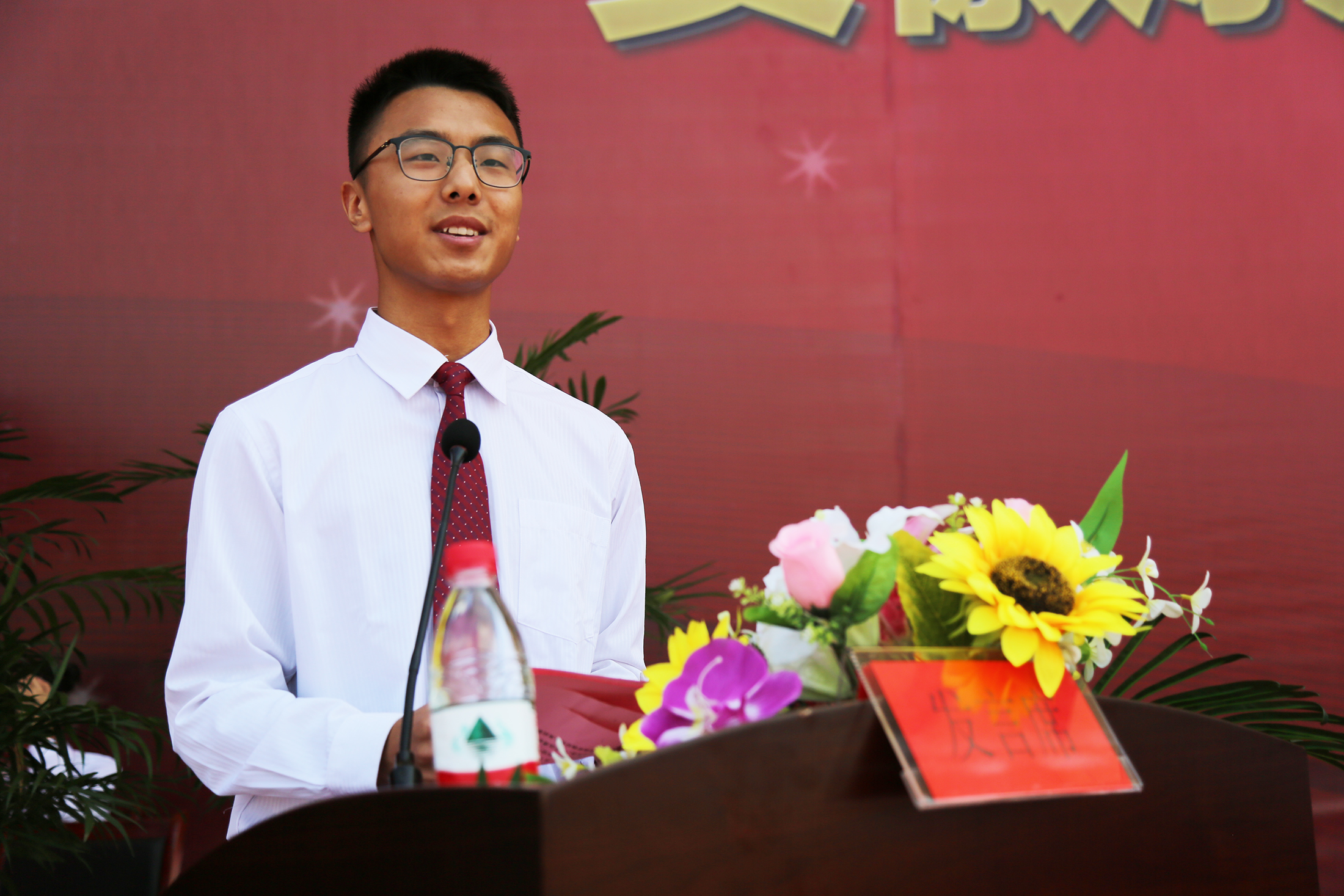 信息工程学院新生代表吴琼、商学院老生代表曹震在发言中号召全体新生在大学里刻苦学习,提高自己,充实自己,参加课外实践,开阔视野,在华园体会不一样的青春,成为更优秀的自己。