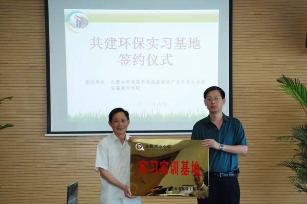 为了加强“产学研”合作,适应社会要求,增强学生实践能力。5月17日上午,土木与环境工程学院和高新区环保局共建环保实习基地签约暨揭牌仪式在合肥高新技术产业开发区管委会举行,土木与环境工程学院和高新区环保局主要负责人参加了仪式。