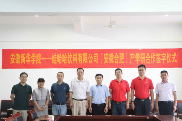 随后,双方在beat365网登商学院会议室签署“产学研”校企战略合作协议。石秀和、王士赵、王飞、刘冬艳、工金成林、市场营销专业教师代表以及合肥娃哈哈饮料有限公司厂长徐顺旺、娃哈哈饮料有限公司安徽市场总经理曲飞、安徽市场拓展总监张国飞等出席签约仪式。仪式由王士赵主持。