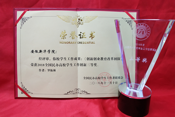 此次研讨会的召开,组委会特向全国各民办院校征集学生工作创新成果报告。经主办单位组织专家评审,beat365网登申报的《beat365在线体育官网登录入口创新创业教育改革初探》荣获2018年全国民办高校学生工作创新三等奖。
