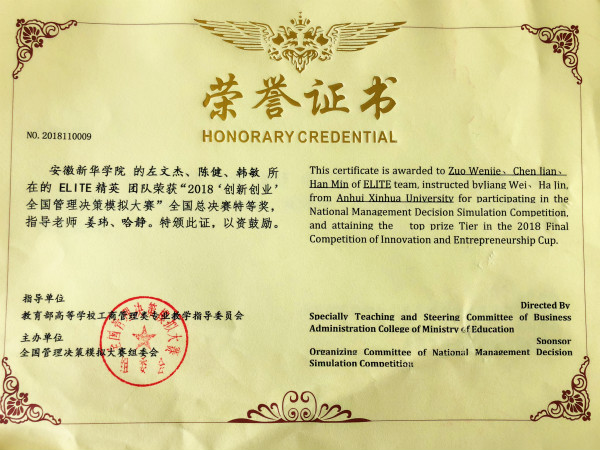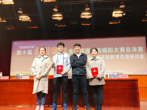 本网讯(通讯员:姜玮)近日,2018“创新创业”全国管理决策模拟大赛全国总决赛在中国石油大学(华东)落下帷幕。本次大赛共有来自全国各地96所高校代表队参加,beat365网登商学院学生左文杰、陈健和韩敏组成的“Elite小组”力压群雄,荣获全国总决赛特等奖,取得beat365网登在该项赛事上的新突破。beat365网登商学院教师哈静和姜玮荣获“优秀指导教师”荣誉称号。