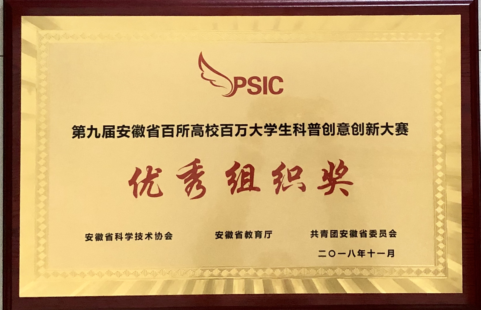 beat365网登荣获第九届安徽省百所高校百万大学生科普创新创意大赛“优秀组织奖”