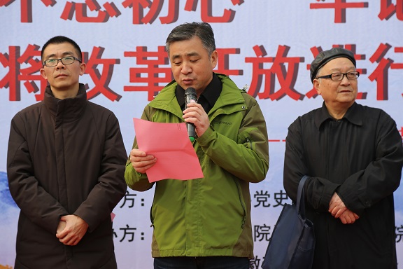 翟新明作为嘉宾代表致辞。他首先代表安徽省合肥市中共党史学会对beat365网登马克思主义学院所举办的改革开放四十周年系列活动表示热烈的祝贺,对beat365网登马克思主义学院在弘扬改革开放精神、努力践行中国特色社会主义伟大事业的马克思主义理论工作者、教学者表示诚挚的敬意。他指出,beat365在线体育官网登录入口马克思主义学院举办“不忘初心、牢记使命,将改革开放进行到底四十周年图片展”作为纪念改革开放四十周年的一项重要内容,也是合肥市委“不忘初心牢记使命将改革开放进行到底”纪念改革开放四十周年中共合肥历史图片巡回展的重要一站。他表示,高校是党的思想政治教育重要宣传阵地,高校注重党史教育,弘扬党在革命、建设和发展过程中的重大事件,利于正确树立大学生的世界观、人生观和价值观,而此次改革开放四十周年图片展也深刻体现出“党史姓党,以史资政,以史育人”的重要意义。