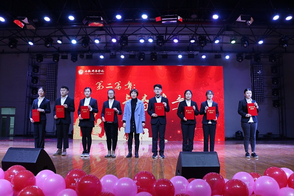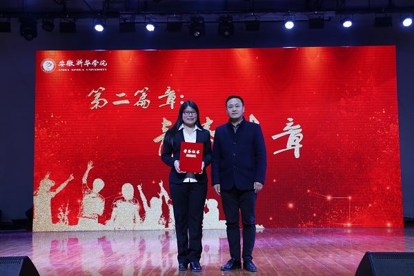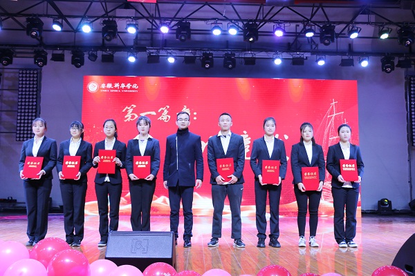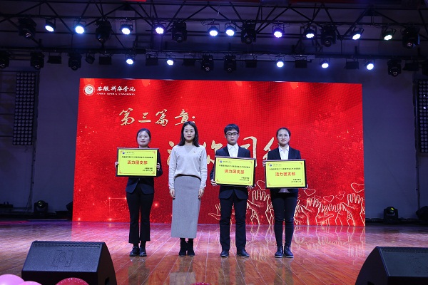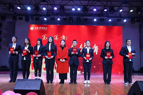 “青春华章”回顾了外国语学院学子在志愿公益、社团活动、社会实践上取得的成绩,表彰了社会实践活动先进个人、优秀志愿服务者、优秀班干部、三好学生、十佳大学生、自强之星。教师代表高芬、黄梦、万媛媛、武英勋、杨光分别为获奖同学颁奖。