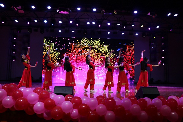 随后,开场舞蹈《大漠之花》点燃了全场的气氛。同学们挥动双手,变换脚步,腾空跃起,旋转飞舞,以优美的舞姿将婀娜的异域风情演绎得淋漓尽致。紧接着,歌曲《再一次出发》激励同学们以更高的责任感和使命感不断前行,在新时代的号召中再一次出发。