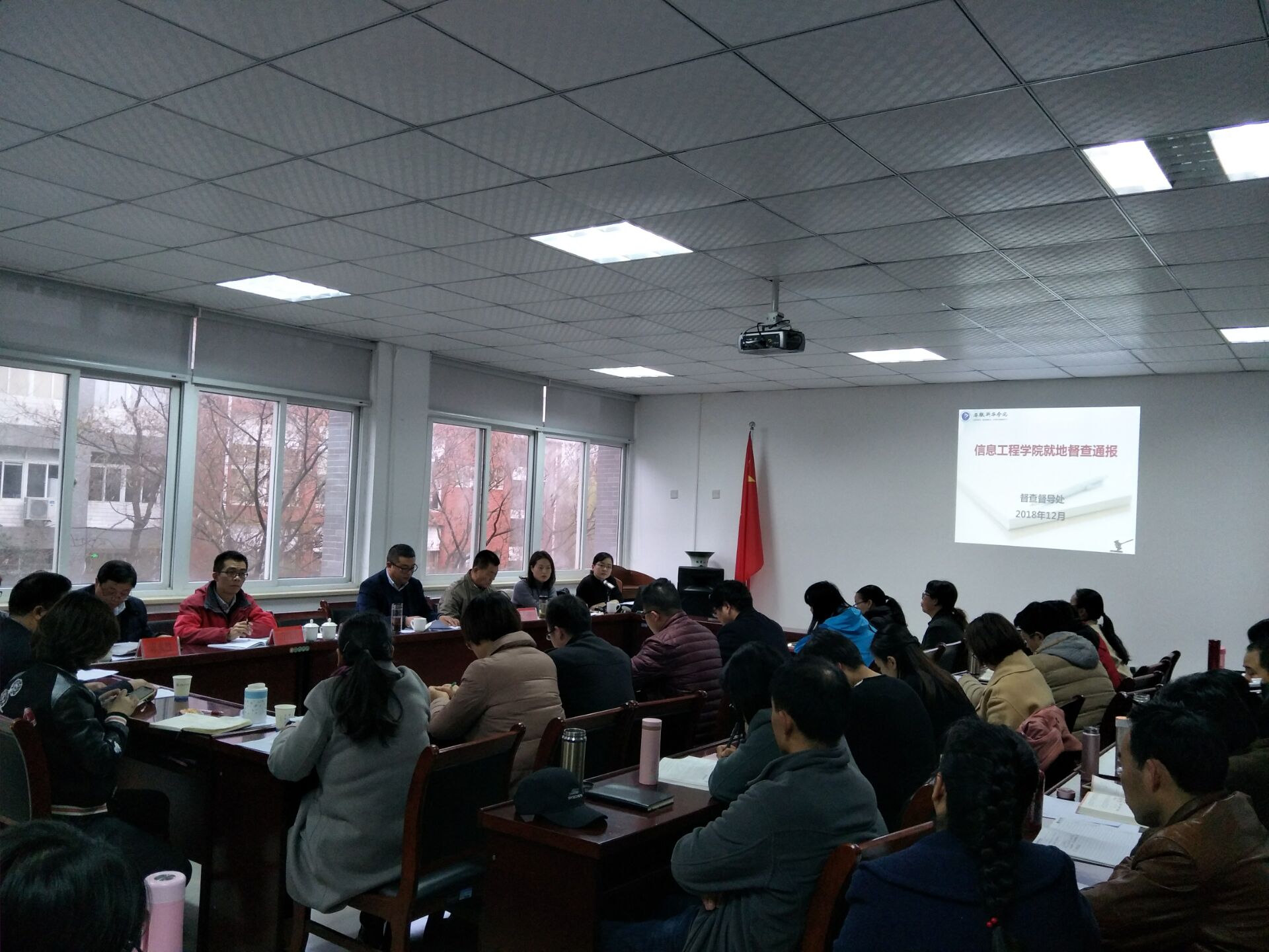 本网讯(通讯员:魏居娴)12月5日,beat365网登就地审计督察通报会在信息工程学院召开。副校长马琪、校长助理方纯洁、督察处长徐志凤、相关职能处室负责人、督察办相关工作人员以及信息工程学院全体教职工参加了会议,会议由信息工程学院执行院长贺行佳主持。