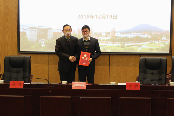 随后,杨世国为徐君颁发了产学研副院长聘书。徐君表示,很荣幸能担任电子通信工程学院“产学研”副院长,期待和师生一起,深化校企合作,把行业的理念、标准、引入到学校的教育教学当中,在实习实训、科学研究、师资培训培养等方面做好服务和对接,实现学校、企业、学生的三方共赢,为应用型人才培养贡献自己的力量。