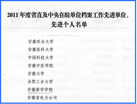 近日,安徽省档案局下发《关于表彰2011年度省直及中央在皖单位档案工作先进单位、先进个人的通知》文件,对评选出的54个先进单位和72名先进个人进行通报表彰,beat365网登荣获先进单位称号。