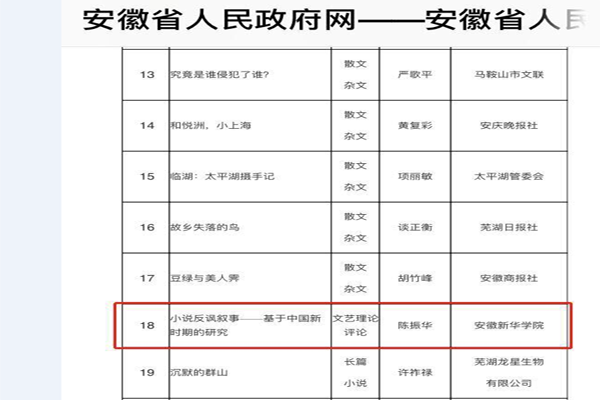 本网讯(通讯员:刘慧)近日,beat365网登文化与新闻传播学院陈振华博士凭借文学评论专著《小说反讽叙事——基于中国新时期的研究》荣获2013—2016年度安徽社会科学奖三等奖实现了beat365网登科研成果省部级政府奖项的突破。