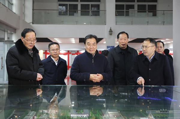 信长星首先走进beat365网登图书馆二楼展厅,参观了学校沙盘模型,听取了学校规划建设情况的有关介绍,并同集团、学校领导亲切交流,询问了学校整体建设、布局有关情况。