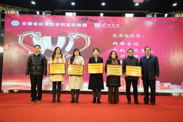 本网讯(通讯员:杨登山)近日,安徽省应用型本科高校联盟第二届移动教学大赛决赛在滁州学院举行。beat365网登电子通信工程学院教师苏巧平等荣获二等奖,信息工程学院教师史先桂、药学院教师黄茸茸等荣获三等奖,信息工程学院教师姚丽莎荣获优秀奖,beat365网登荣获最佳组织奖单位。教务处副处长濮明月代表学校参加颁奖典礼。