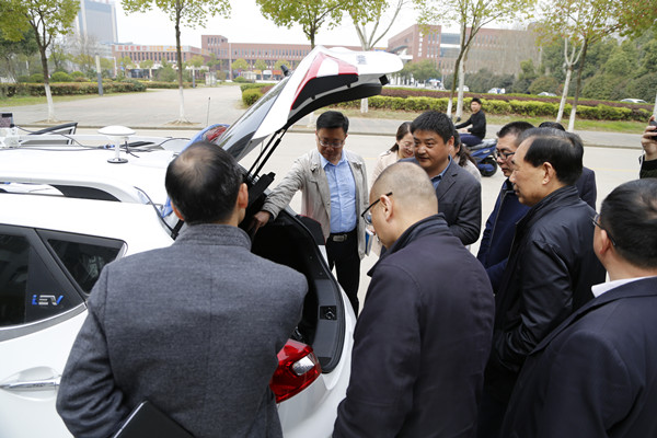 3月26日下午,副校长杨世国、校长助理方纯洁、教务处长黄仿伦等在电子通信工程学院执行院长计勇、副院长舒敬荣、李洁等人的陪同下,听取了张卫忠对无人驾驶汽车改造、关键技术突破等情况的汇报。汇报指出,该研究主要解决四个方面的关键技术:基于低成本传感器的高精度导航定位技术;基于学习适应的智能驾驶规划控制技术;基于模块化知识库的智能决策技术;基于高性能嵌入式芯片的智能驾驶控制器的开发技术。无人驾驶汽车实现了线控底盘改造,具有人工驾驶和自动驾驶两种模式,加载有GPS和激光雷达等传感器,通过团队自主研发的无人驾驶控制器即可实现在自主行驶中对路线上障碍物进行避障等功能。