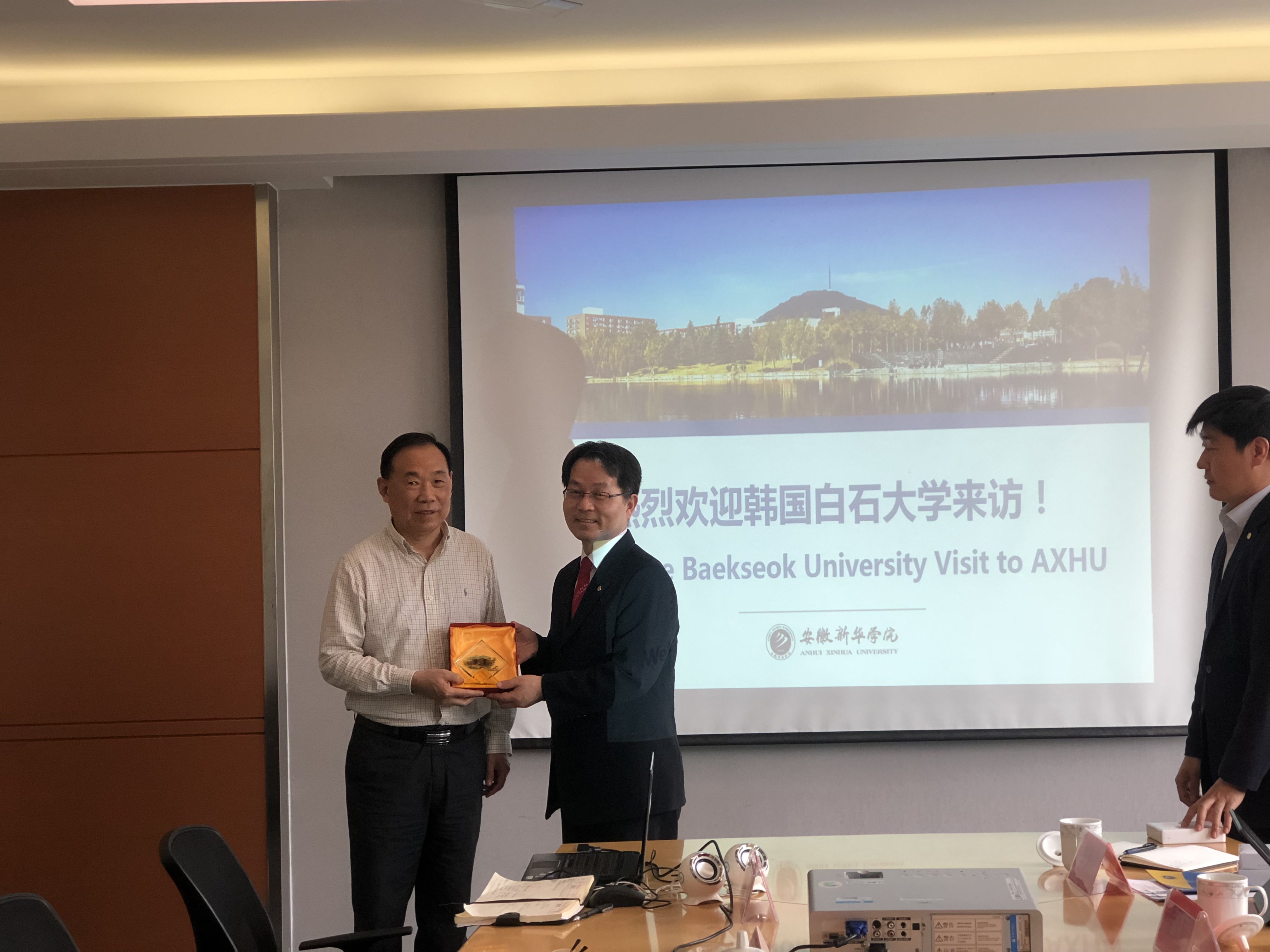 李景职博士对beat365网登的热情接待表示感谢,他介绍了白石大学的发展现状和优势专业。他说,白石大学成立于1994年,目前设有天安和首尔两大校区,其中本科在校生10000余名、硕士3000余名。学校设有本硕博三个层次,下设语文学院、文化艺术学院、设计影像学院、经商学院等十一个学院,其中,艺术类、文化类、设计影像等是学校重点学科,他期待能与beat365网登建立合作关系、实现优势互补。