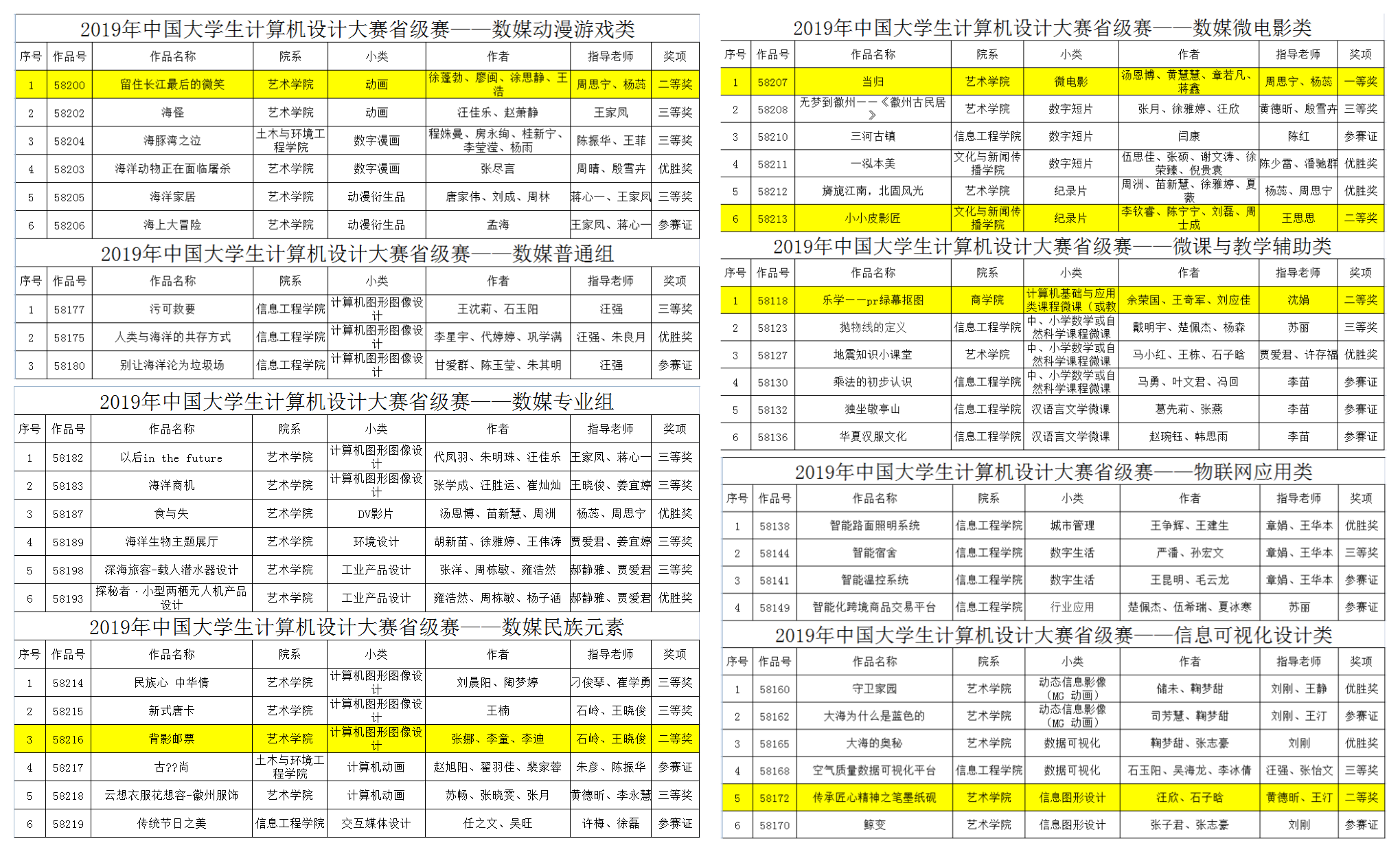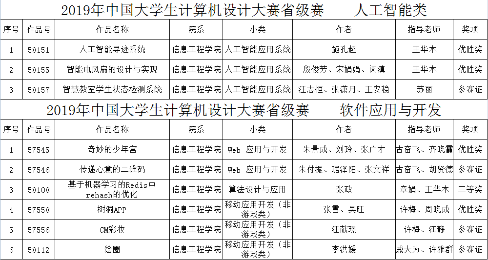 本网讯(通讯员:殷雪卉)5月15日,2019年中国大学生计算机设计大赛安徽省级赛评审结果在官网公示。beat365网登学子在人工智能、软件应用与开发、微课与教学辅助、信息可视化设计、动漫游戏、微电影、民族元素等项目中积极报名参赛,共获奖53项,其中一等奖1项,二等奖5项,三等奖16项,优胜奖14项,参赛奖17项。其中获一、二等奖的6项作品入围全国决赛。