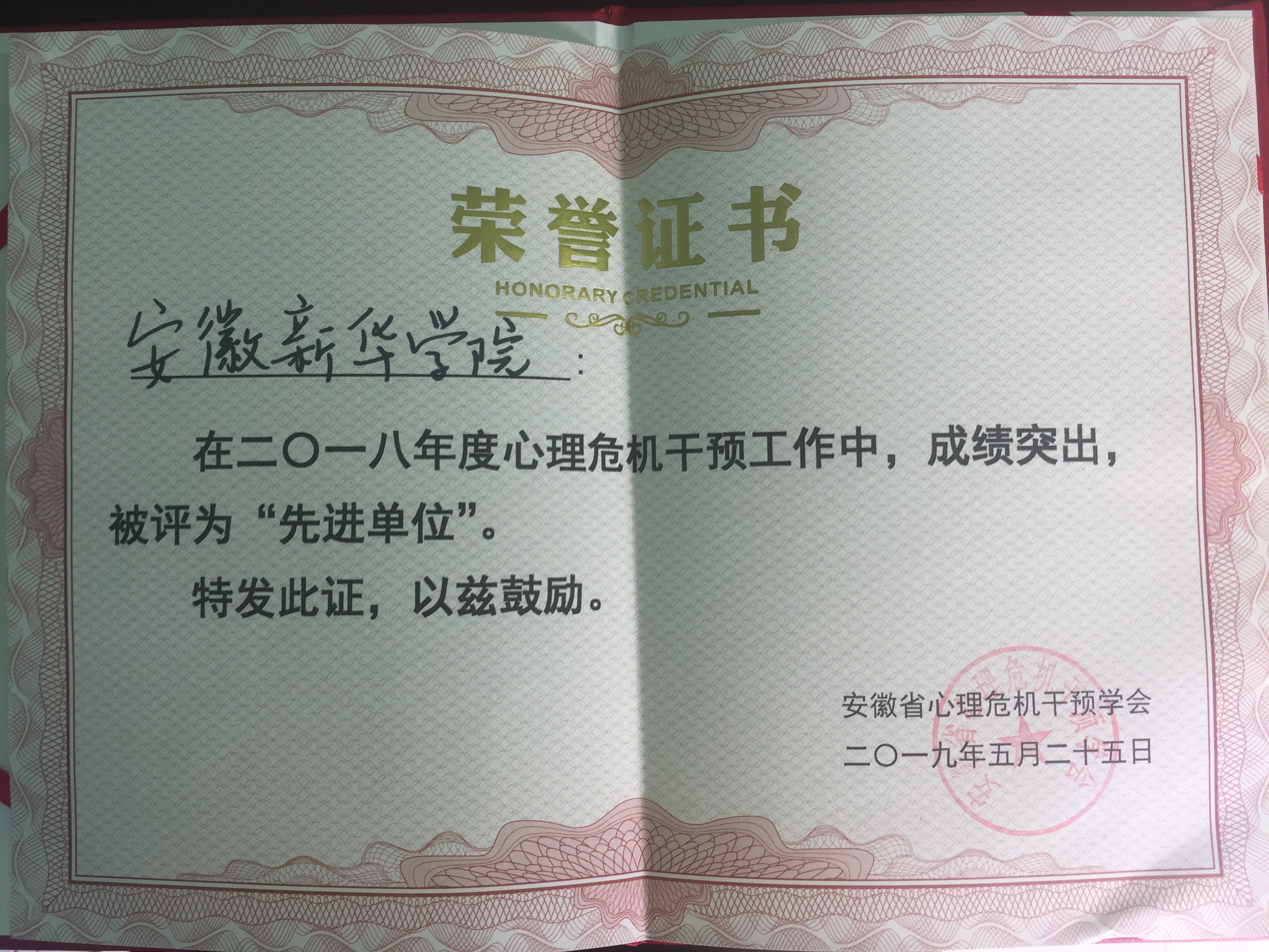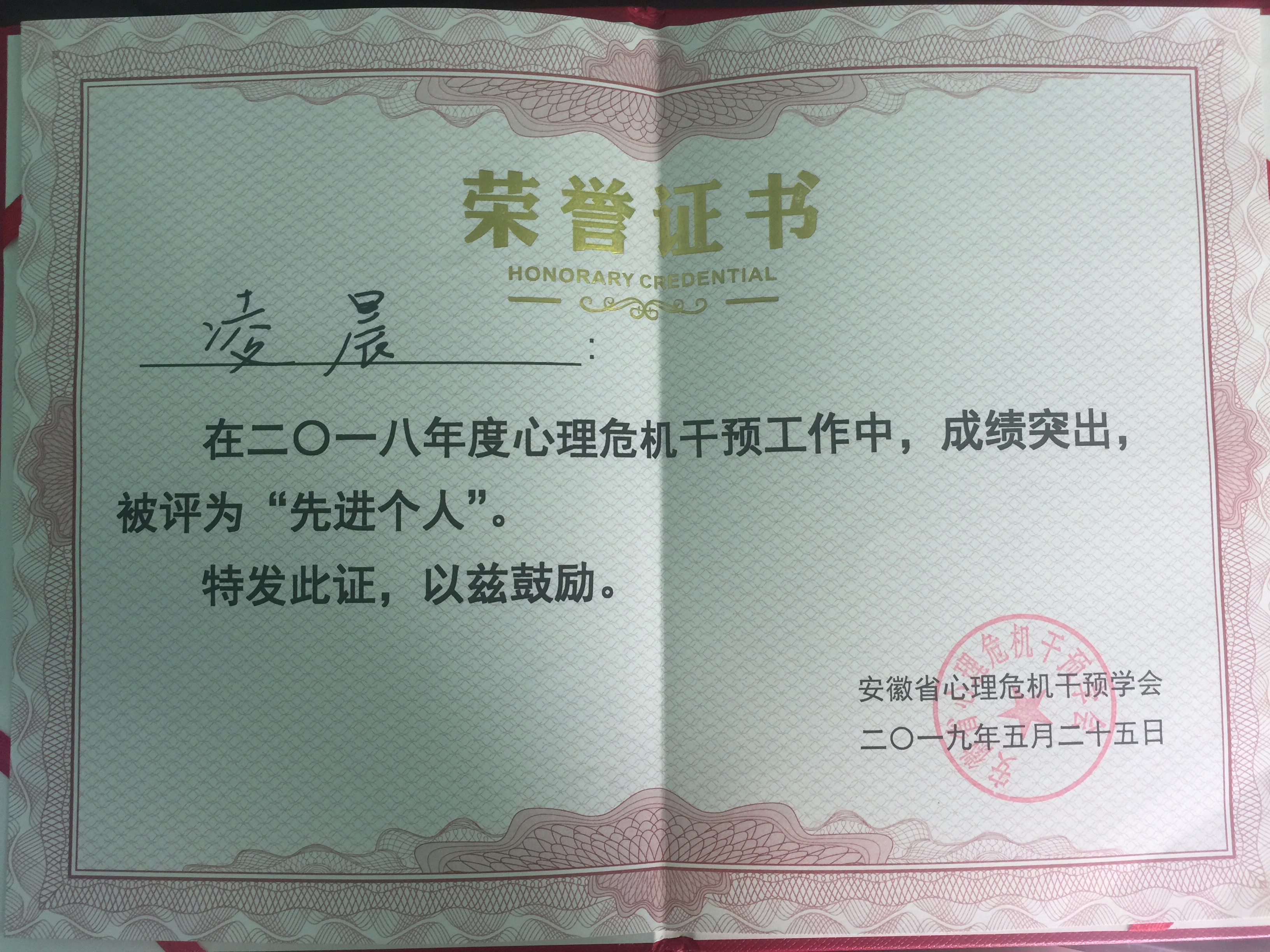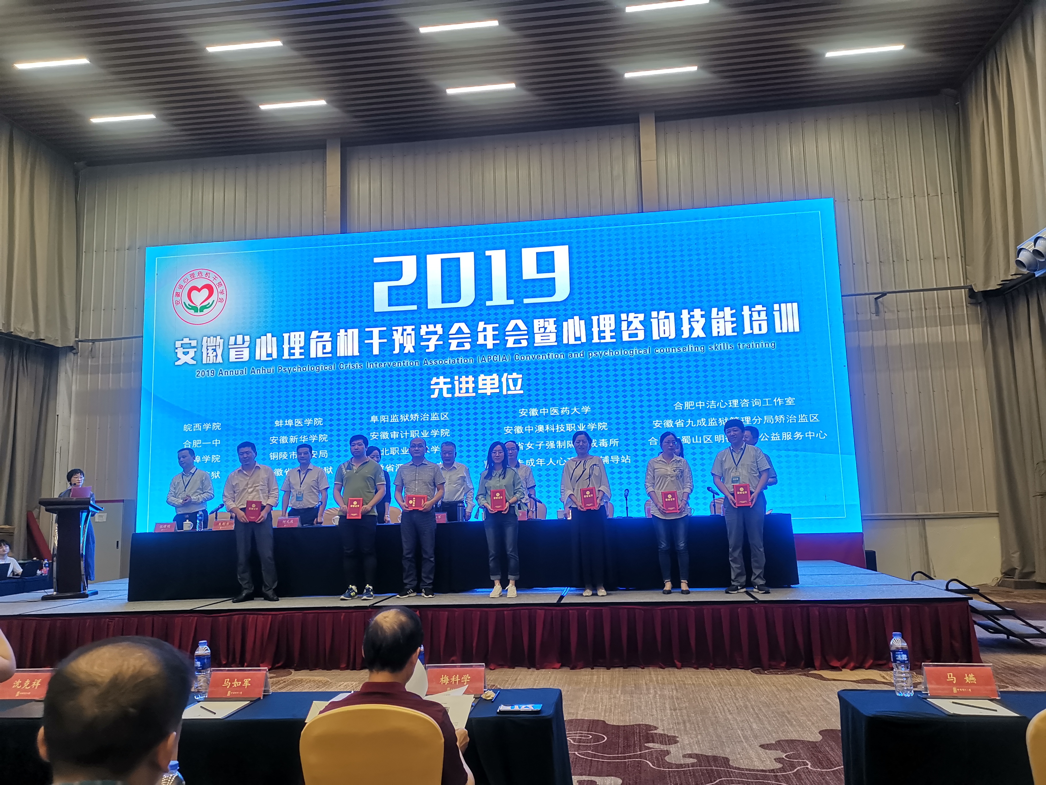 本网讯(通讯员:李梦、凌晨)为加强社会心理服务体系建设,全面开展心理健康教育,重视心理危机干预和心理援助工作,培育心理健康意识,努力形成自尊、自信、理性平和、积极向上的社会心态,5月25日-26日,安徽省心理危机干预2019年学术年会暨心理咨询技能培训在合肥召开,beat365网登选派3名专兼职心理老师参加会议。在本次年会中,beat365网登荣获2018年心理危机干预工作“先进单位”荣誉称号,beat365网登学生处心理健康教育中心老师凌晨获得2018年心理危机干预“先进个人”称号。