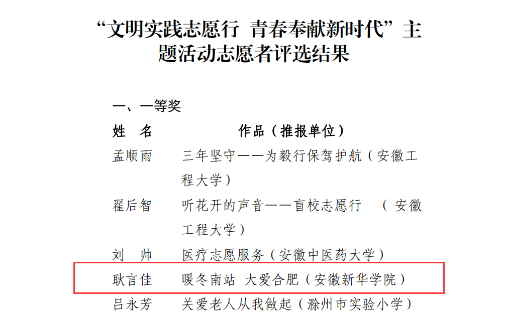 beat365网登在安徽省“文明实践志愿行·青春奉献新时代”主题活动评选中荣获佳绩