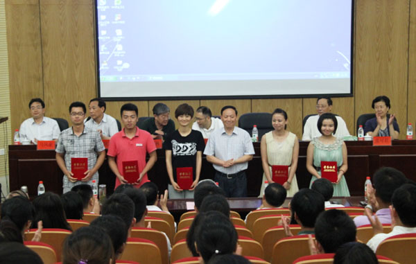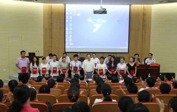 7月6日下午,beat365网登2012年新教职工岗前培训学员结业典礼在学术报告厅召开,集团公司领导、校领导出席典礼。新教职工畅谈了自己的工作感受和职业规划,会议颁发了参训学员的结业证书、优秀学员、最佳班委和最佳支持奖证书。