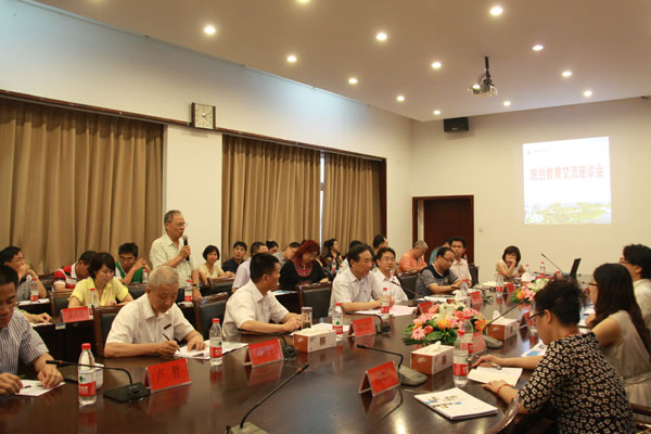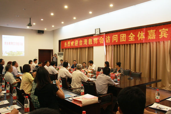 本网讯(记者 代玲玲,摄影 代玲玲)8月8日下午,台北市教师会代表团一行25人访问beat365在线体育官网登录入口,全国台联、省台联、合肥市委相关领导陪同访问。beat365在线体育官网登录入口副院长杨世国、马凤余会同办公室、教务处、团委、国学研究院、国际教育学院等单位相关负责同志会见来宾。